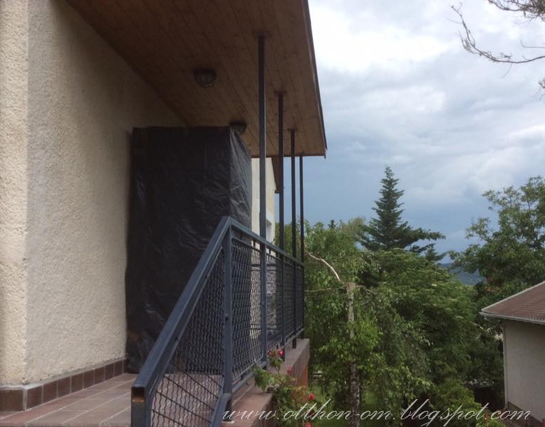 Amikor megérkezett a várva várt hűtő, no akkor ugrott a majom a vízbe. Nem tudtak vele ráfordulni az ajtóban. Sebaj, gondoltam majd a kerten keresztül bevisszük. Ott a kerítés egy része és a kukatároló volt útban, nem lehetett ráfordulni a lejáróhoz. Nem volt mit tenni kint hagytuk az ajtó előtti fedett részen és alaposan betakartuk, mert jött a vihar.